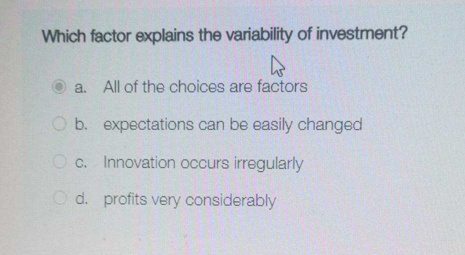 And stock price volatility - among. Which factor explains the variability of investment. Irregularity of Innovation Technological progress is a major determinant of investment.